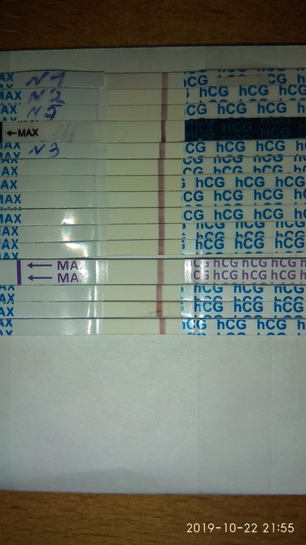 22ДЦ, 13ДПО, такая полосочка была примерно на 8ДПО, глаз цепляла но муж не видел😂 и вот отчетливо видно стало с 10-11ДПО и сегодняшний тест еще ярче того что в моем дневнике) овулю тестами ловила она была на 12ДЦ. 24 числа должна быть менструация, нооо надеюсь ее не будет, на ХГЧ завтра запишусь)