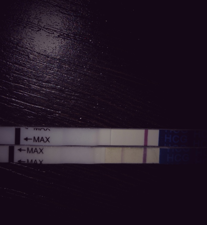 Девочки, просмотрите на верхний тест, Нижний с прошлой беременности для сравнения ) Затемнила, кажется что что то видно😊Предположительно 9 дпо. Видите ли вы что то?