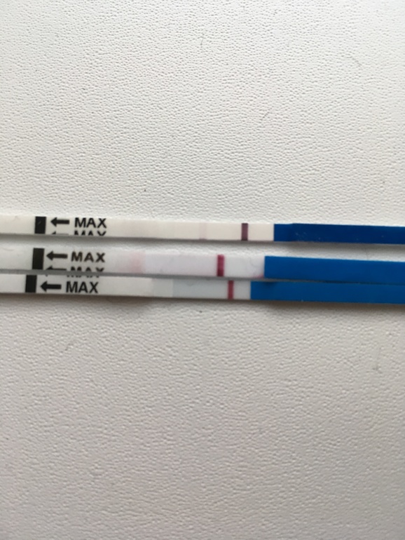 Днём пришла с работы, сделала ещё два теста фрау и lady test. Тесты чистые... но на работе выпила 2,5 кружки чая. На фото первый тест утро, остальные два день.