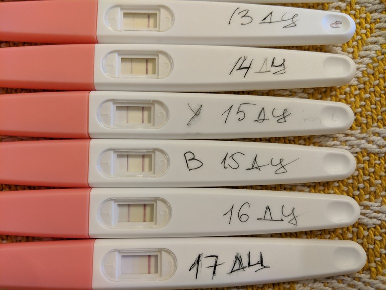 Девочки,привет! Я новичок в тестах на овуляцию,поэтому хотела попросить помощи. Судя по тестам,овуляция произошла на 15 день+ощущения были "особенные":тянуло поясницу,кололо в боку. Но полоска на 15 день(делала тест и утром,часов в 12,и вечером,в 17 часов) не сказать что супер яркая...вот и не знаю,стоит ли верить,что день X был...
