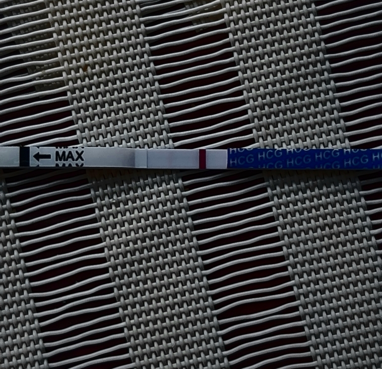 До этого все тесты были кристально чистыми, а на этом вторая полосочка появилась минут через 5, на фото наверно будет плохо видно, но в живую она широкая и розовая)))