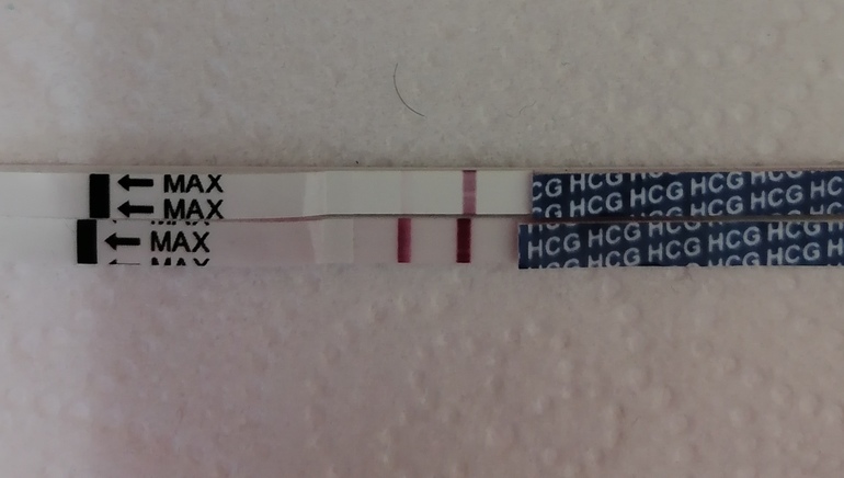 Если другой фирмы, то полоски отличаются. Лучше одной фирмы делать. И на первую мочу яркие, а вечером могут быть слабее.