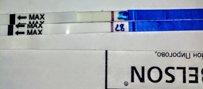 Цикл 28 дней , в этом месяце овуляцию не отслеживала(забила).На фото 24(28.06) и 25(29.06) день цикла тест фемитест.Это у него реагент такой?