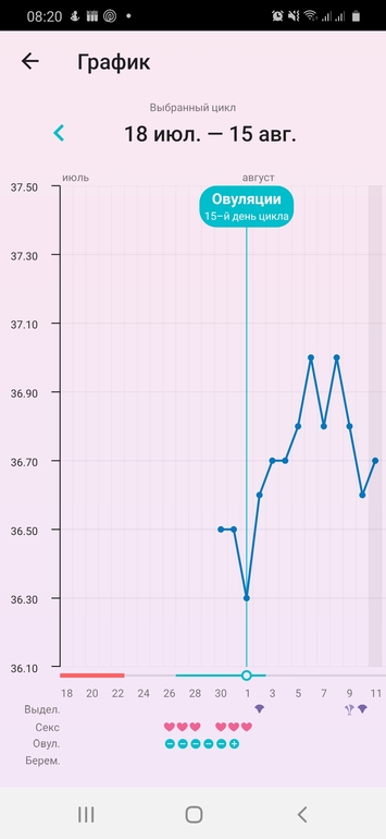 Сегодня измерила БТ, по графику совсем не похоже на беременность, температура упала ниже 37 (цикл 26 дней, так что месячные должны быть через 2 дня, график внизу)