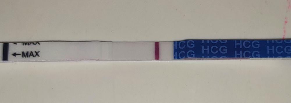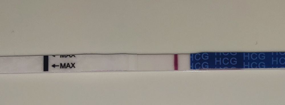 Короче, было по капле крови с 10 по 12 дпо, к вечеру 12 дпо светло коричневая мазня. Думала уже вот через пару дней прийдут М. Сегодня чистота, обычные белые выделения, живот чуть меньше ноет и грудь как-то меньше болит. Думала ну вот точно дни идут. Но решила сделать тест, не на утреннюю мочу, и терпела мало. Я не знаю увидит ли кто-то здесь, сайт портит качество. Но в жизни меня трусит, потому что я вижу полоску. Но не могу понять, может тест перемочила? Первое фото - сухой тест.