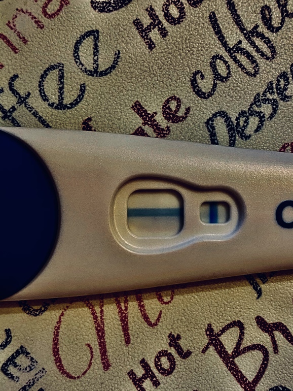 Вообще ничего не видно . Пустой . У меня даже вот такие реагенты были ... этому тесту можно верить , когда прям явный + показывает , а это как правило уже после задержки .