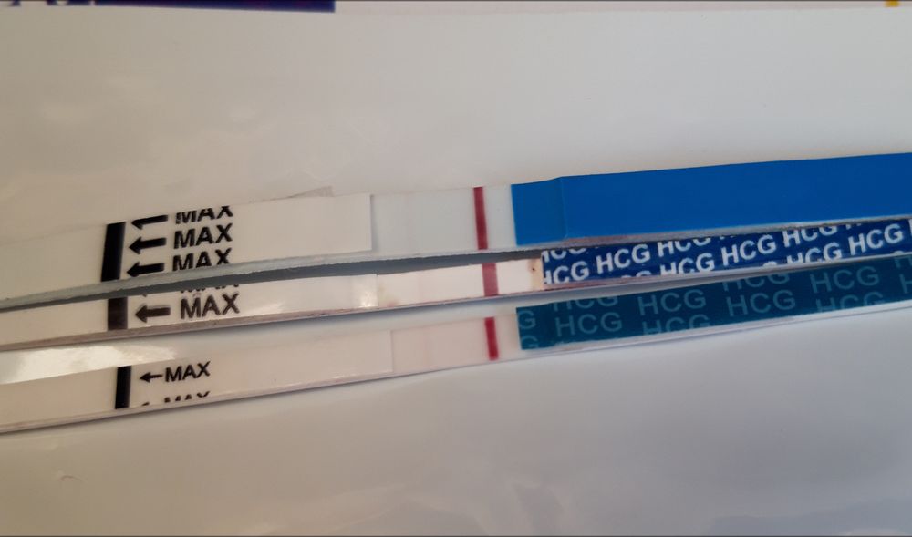 Три разных теста с разной чувствительностью. Но одинаково слабый результат. 1дз, 13 дпо.