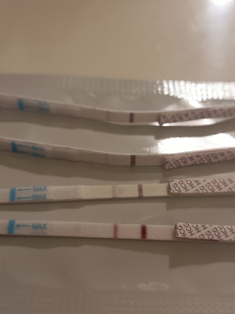 На фото 2 теста. Голубой делала на 5 день задержки, а зелёный на - 6ой.