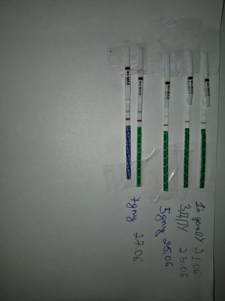 Здравствуйте, у меня спкя и спустя 1.5 года планирования мне поставили бесплодие. Сказали попробуем стимулировать, пила летразол и дивигель мазала, так как тонкий эндометрий. На летразоле овуляция произошла сама и по узи видели желтое тело в левом яичнике. Но гинеколог сказала пить летразол дальше, так как в правом яичнике рос тоже фолликул, в субботу сделали укол хгч 5000. Мне стало любопытно, действительно ли тест покажет ложноположительный результат, так и вышло была бледная полоска. Сейчас 7 день после укола и будто бы полоски ярче становятся, я читала на форуме, что возможно свой хгч растет. Хотя я знаю, что укол выветривается недели 2. Никаких симптомов беременности нет, типа тошноты или чего-то такого, температура держится 37-37.3-37.5, тянет живот по очереди с разных сторон, будто яичники и всё
