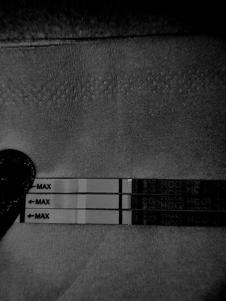 Одно и то же фото в оригинале и в обработке. Освещение в ванной тусклое, свет выключили, телефон дочери и баклажка воды служат фонариком😂 А я пока никому не говорю из домочадцев, что мочу тесты, потому ярче нет варианта😂Расположила тесты не правильно, почему-то, а заметила поздно😅