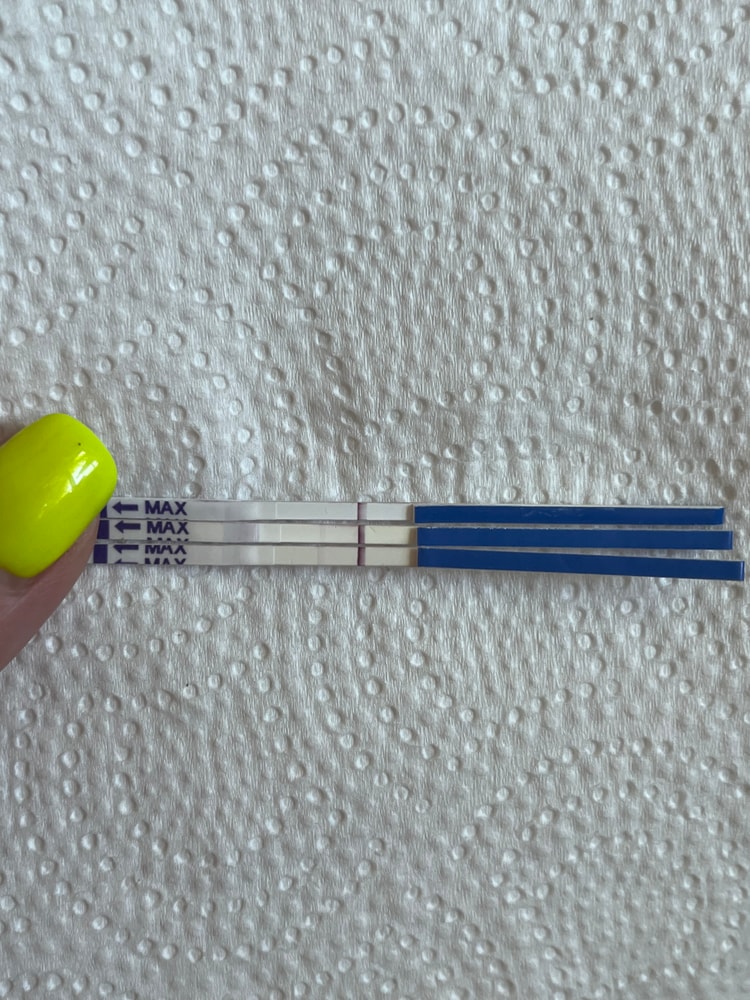 На 25дц, понимаю, что мое состояние не как в обычные циклы, он регулярный после родов предыдущих и на протяжении многих лет не менялся, делаю вечером тест фели тест, показывает слабую полоску, я начиталась, что реагенты показывают по страшному