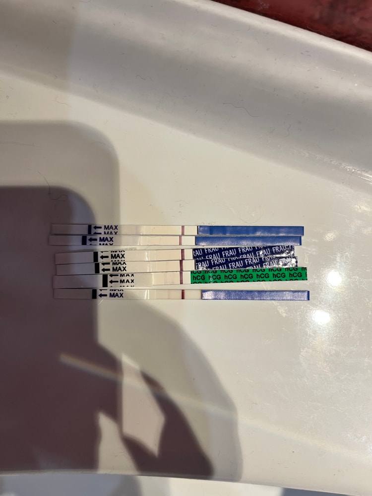 Множество раз делала тесты, постоянно пустые, сегодня 61 день цикла, решила сделать и вот. Вечером сделала еще один и вот