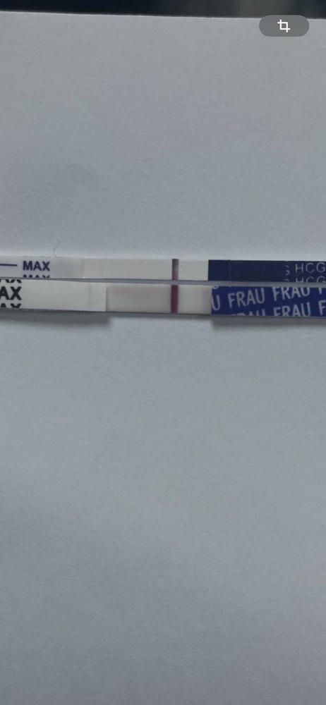 Первое фото - утренний тест и мокрый фрау, второе фото - высохший фрау. Вечером сделаю еще один, если ничего не поменяется пойду сдавать кровь...