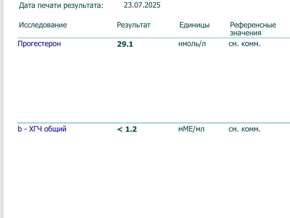 Решила не мучать себя тестами. сдала прогестерон и хгч, что думаете?..есть ли шанс что имплантация была вчера/сегодня? Этот уровень прогестерона не слишком маленький или большой? В общем что думаете? До месячных у меня 4 дня. Овуляция (подтвержденная была 13 числа) дата начала месячных 29.06 по 04.07