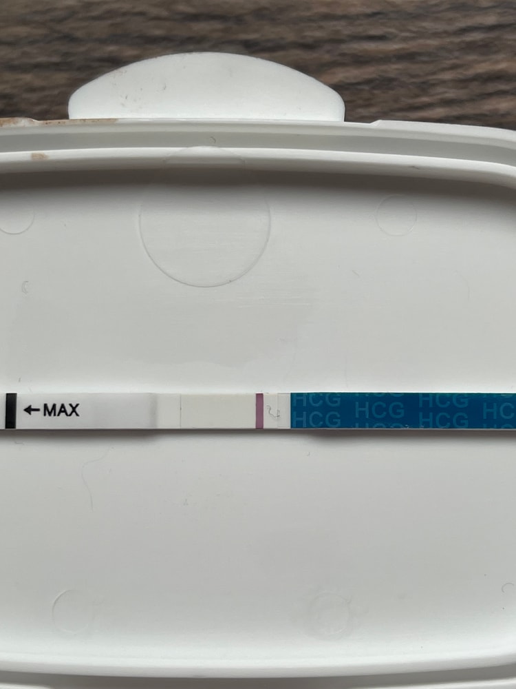 Пустой тест. Беременная полоска на нём широкая и розовая и на 10 дпо(если не ошиблись с дпо), то её хорошо видно уже на мама чеке. Если полоска начала появляться в момент высыхания теста, то это место под полоску. Попробуйте завтра-послезавтра повторить