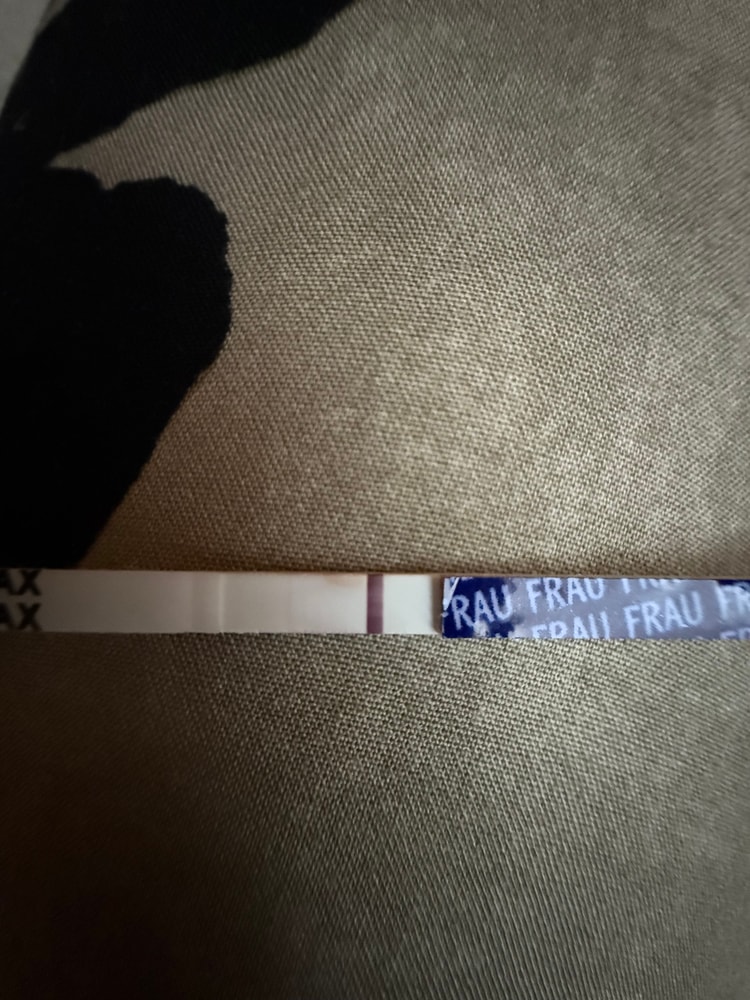 Купите нормальный тест, и сделайте. На фрау наверное реагент. Очень тонкая без форменная полоска. Эви покажет если там что-то есть