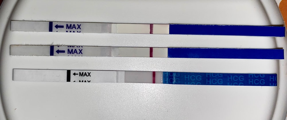 Здравствуйте, мне 25 лет, спкя, дочке старшей 6, планируем второго, репродуктолог выписал прогестерон и спермотон, пьем месяц, сегодня первый день мц, вчера купила тесты 4forcare сверху вчерашний, в середине сегодня, девочки посоветовали сделать другой фирмы, через час после среднего теста сделала мама чек он последний, в итоге не чего не понимаю. Есть что то. Или нет не чего, реагент ? Или все же мои?