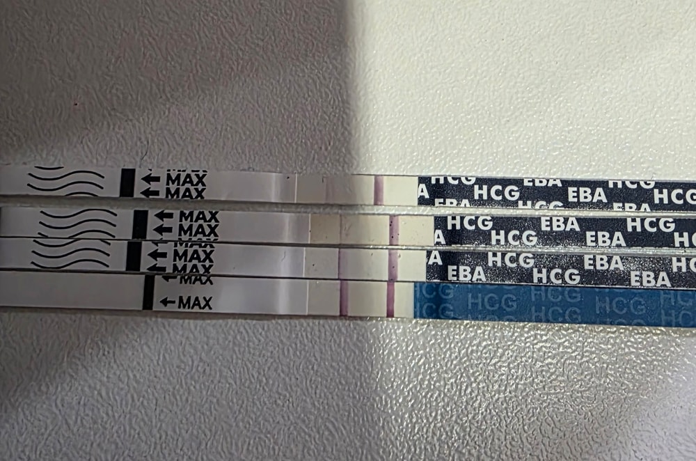 Цикл 31 день, возможно, овуляция на вечер 14 дц (утром был яркий тест, в 20 прилично скрутило от боли с лева). Тесты сделаны за 8 и 7 дней до м. ( примерно 11 и 12 дпо) одинаковый результат - чуть бледные полоски. EVA тест с ВБ.