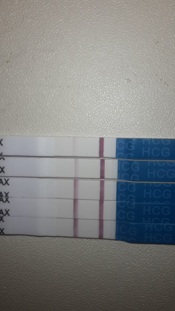 Первая слабая полосочка появилась на 21 дц (предположительно 9 дпо). Сначала была очевидная динамика, но вот 2 последних теста меня смущают. Последний сделан сегодня (примерно 15 дпо), и вторая полоска так и не сравнялсь с контрольной. Видите динамику в двух последних тестах, или они одинаковые? Живот весь день тянет. Страшно. Вдруг это всё?