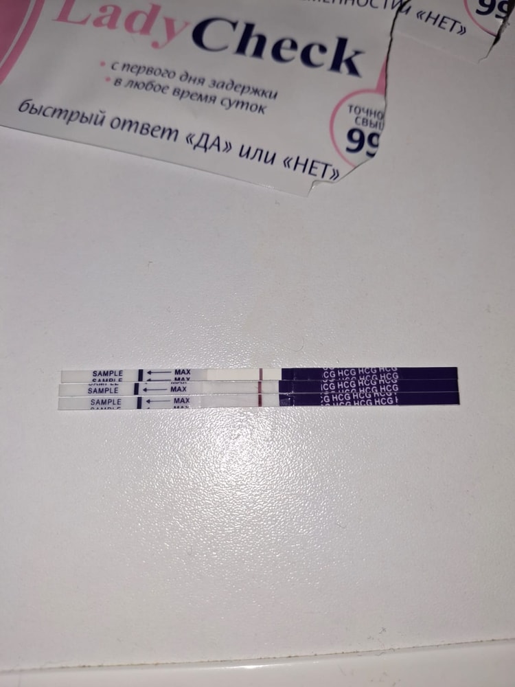 Alena , Здравствуйте, да, утром 2 штуки делала, есть, но очень плохо видно, даже фоткать не стала, единственное делала те же тесты что и вчера утром, и вечером вчера делала, тоже очень тускло, но видно не вооруженным глазом и сразу проявилось, смотря на все, все с полоской, нет без полоски... надеюсь не реагент, хгч пока не хочу идти сдавать, в вс к гинекологу, там узнаю что и как)))