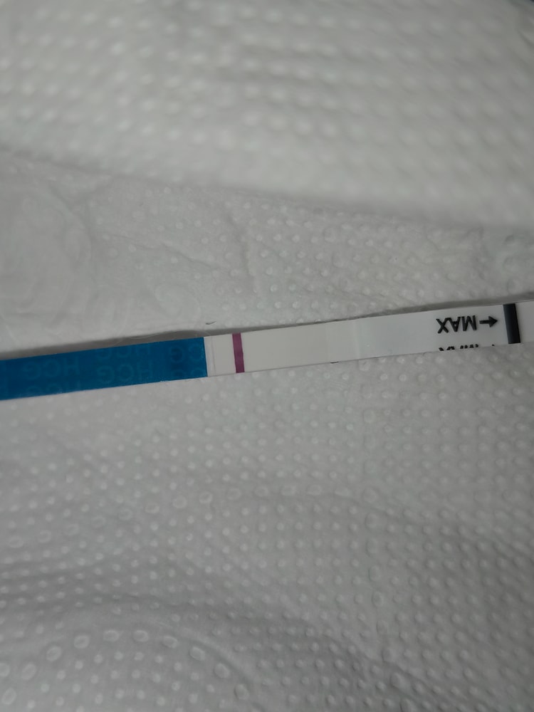 Слабая вторая полоска, похоже на признаки имплантации, но точно сказать сложно.