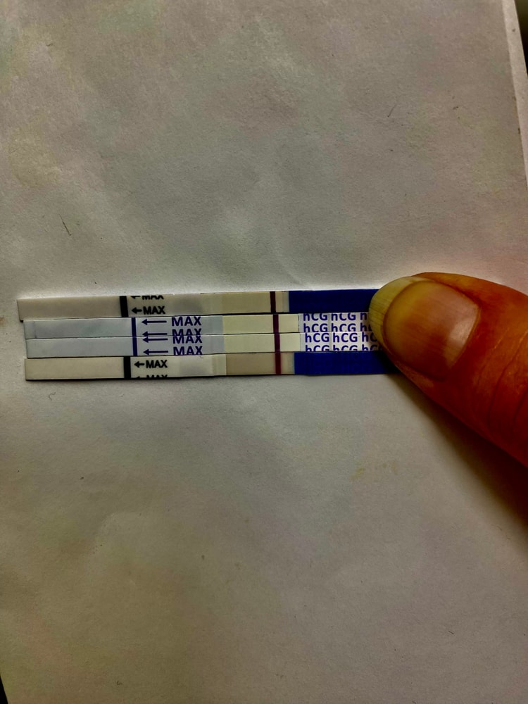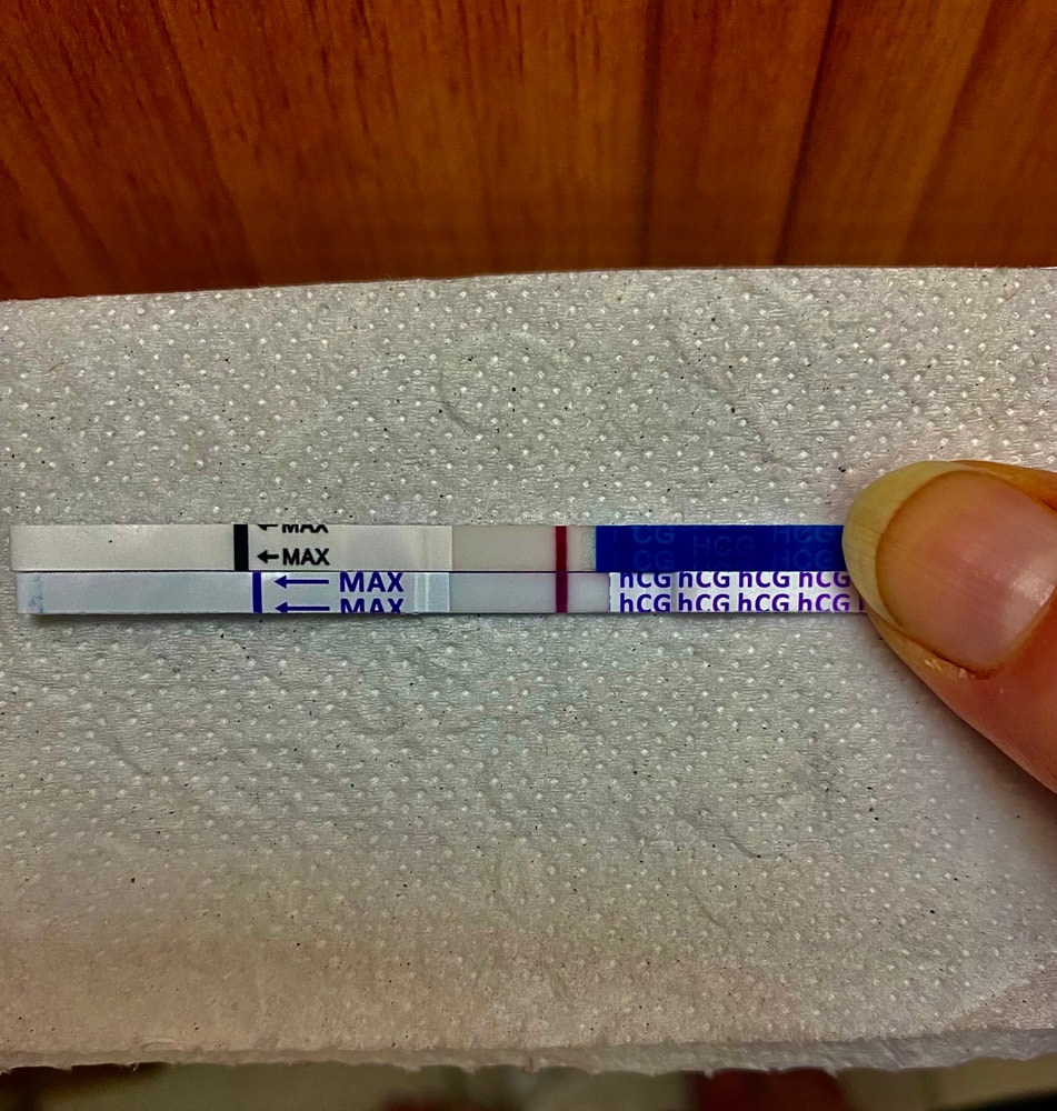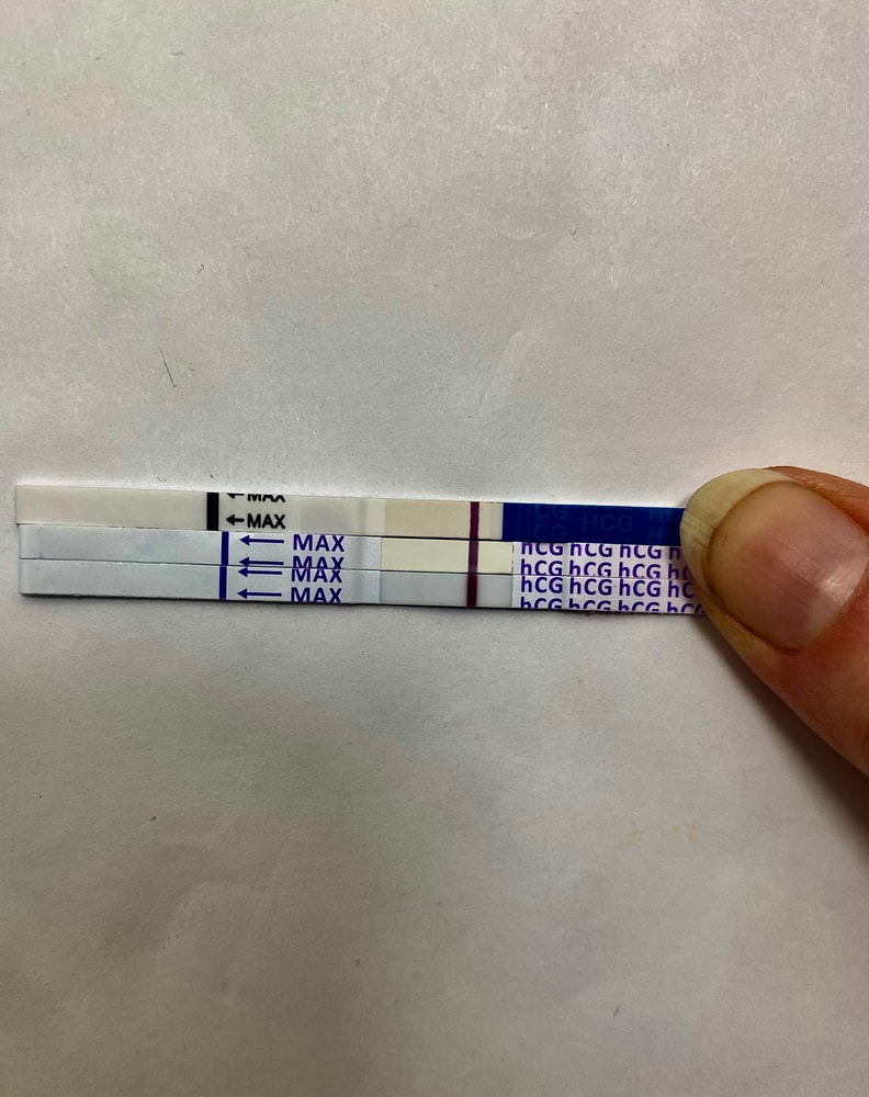 Верхние два утро ( мама чек и розочка) нижние в обед , реагент? До мс 4 дня. Там где два теста это утренние. Там где три нижний в обед Верник высохшие утренние😀 господи сколько непоняток написала😄 простите