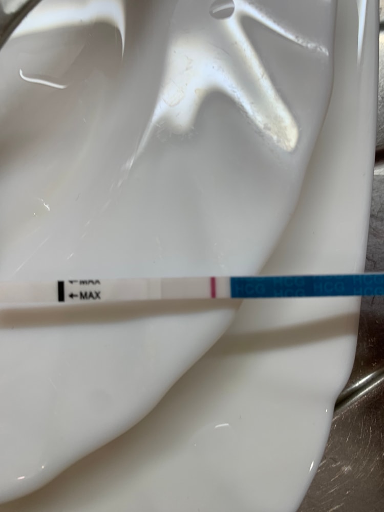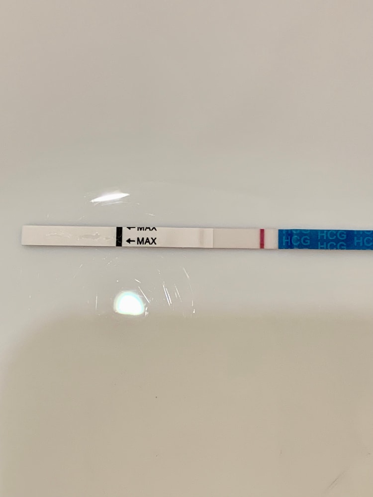 Ну вот вообще не факт, что должна быть яркая полоска, если есть беременность)