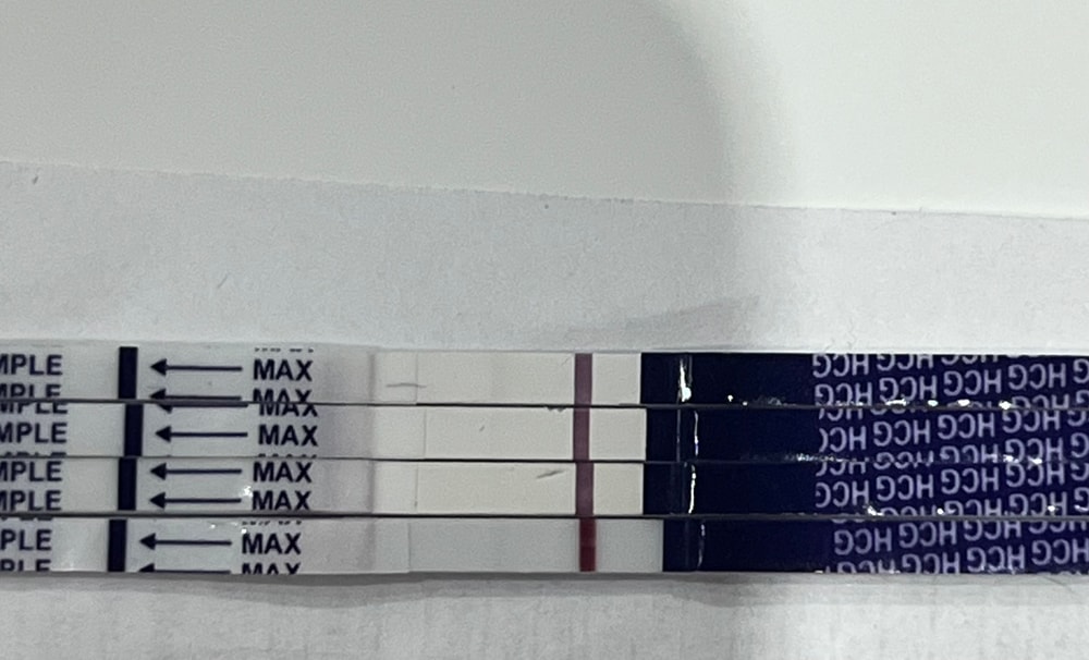 Может ли сразу на 4 тестах быть реагент? Это феми, самый верхний делала в среду, второй в четверг, третий сегодня утром, четвертый, последний сейчас, вечером.