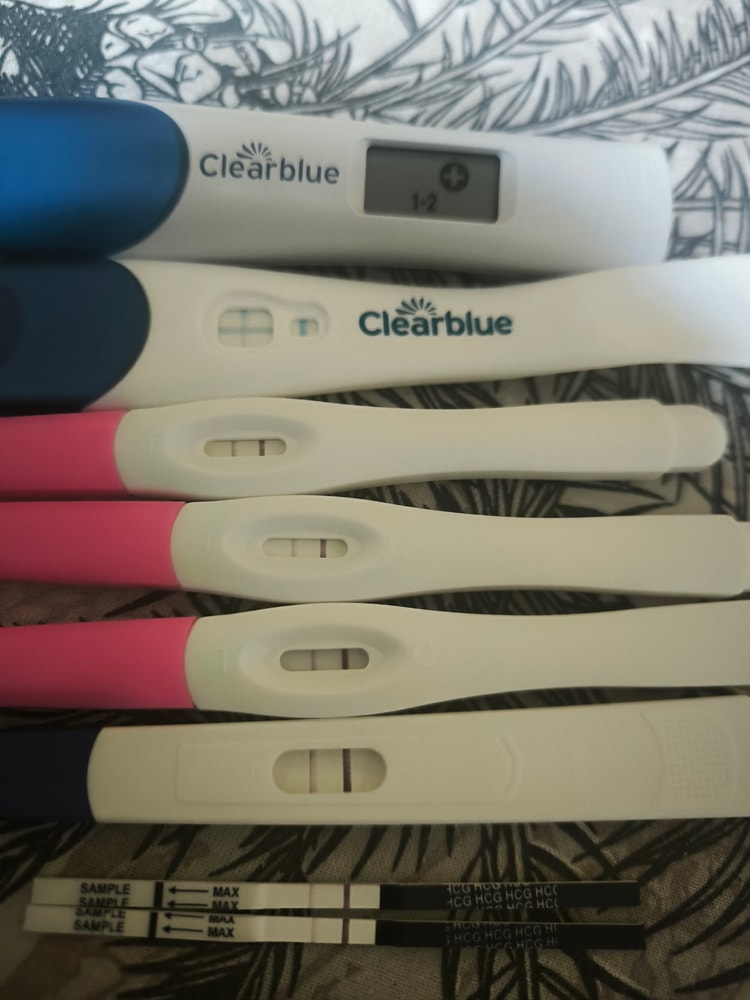 Вот 12 дпо , накручиваю или оно самое ? К гинекологу записалась на запись через две недели , даже если не б то провериться почему 2 полоски , делала тесты разных марок , чувствительности 10 -25 , на 25 сегодня вообще хорошо заметные , и стоит ли верить электронным?