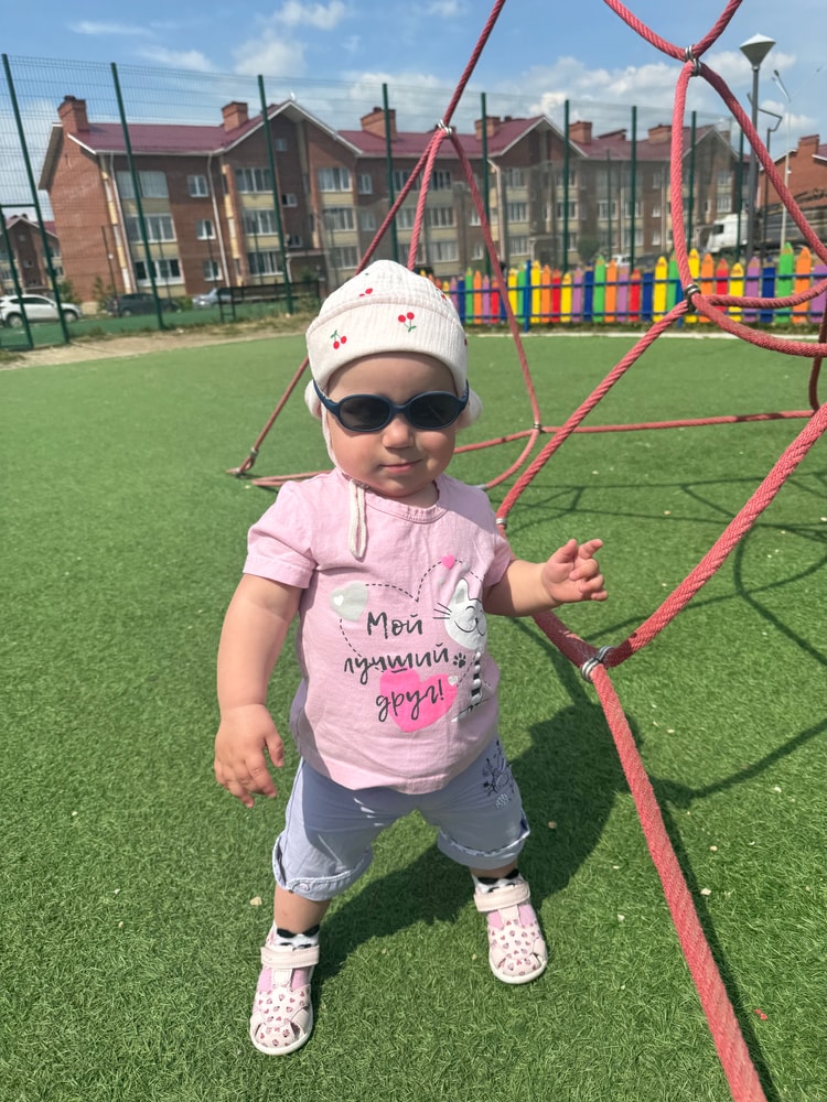 Жара на улице невозможная +30 🥵 Конечно, Маюше надеваем очки на прогулку. И сегодня было не исключение.