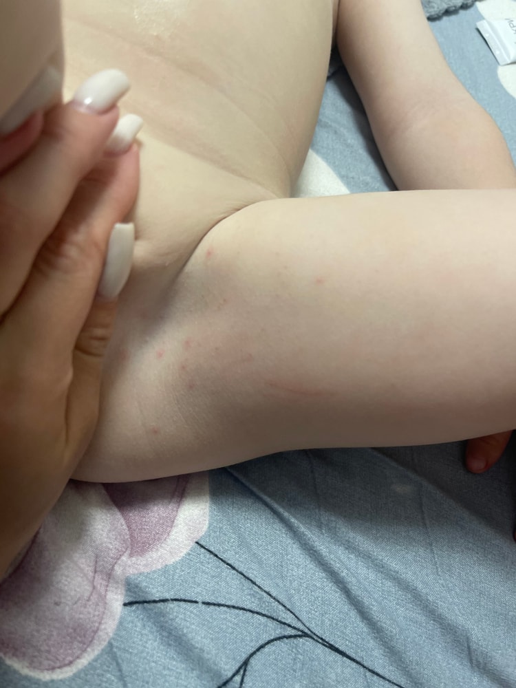 Помогите пожалуйста,может кто знает,что это такое,была сыпь ,думала аллергия ,мазали фенистилом,сходили к педиатру,говорит не аллергия,мазать фукорцином и тд,не помогло,думаю может как опрелость ,в памперсах только ночью,стали мазать присыпкой проходит,но потом снова появляется и так каждый день,дочке почти 3 года,в душ ходим утром и вечером ,в сад уходит чистая ,приходит с такими высыпаниями,именно где генеталии и попка,иногда прям сильно,иногда не очень,сейчас ещё появилось на одной подмышке ,на второй нет,присыпка Джонсанс беби ,сегодня попробовала помазать маслом этой же фирмы,не знаю поможет нет