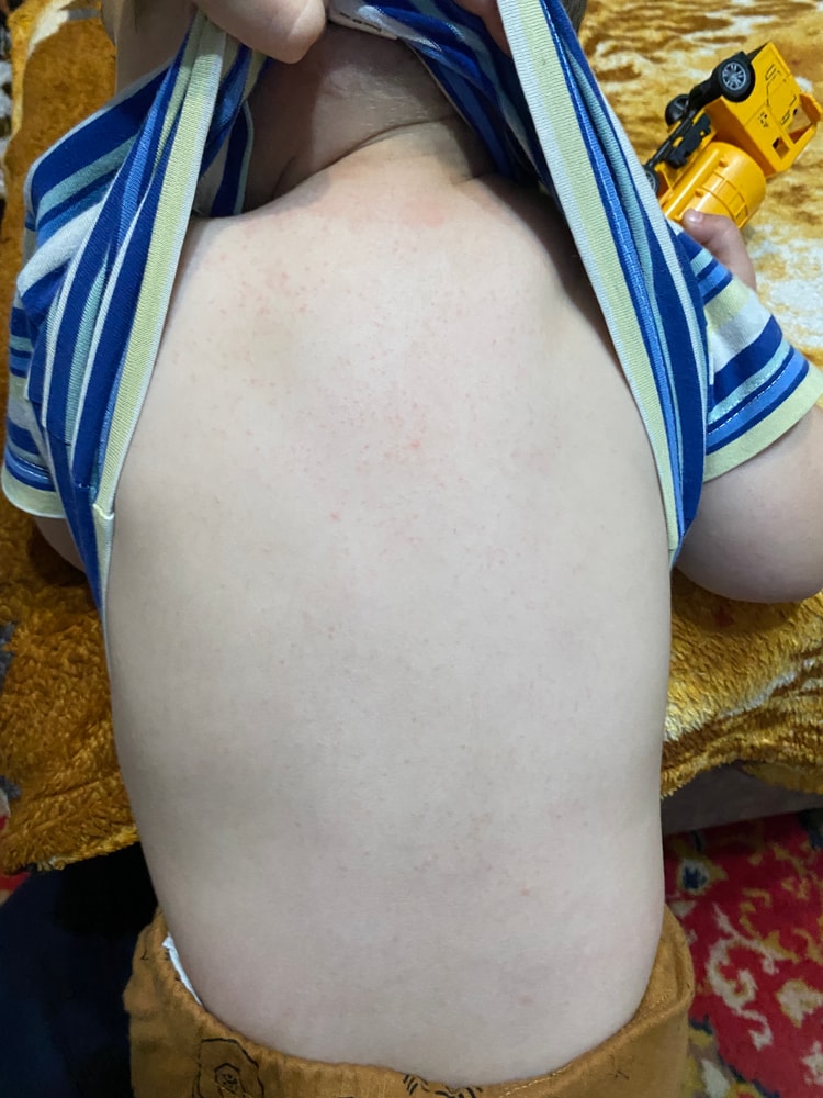Когда только вылезло мы были в этот день у педиатра, до этого были сопли, начался кашель, по поводу сыпи ничего не сказала, было правда почти незаметно. На прием завтра, сыпь странно себя ведет то яркая то бледная.