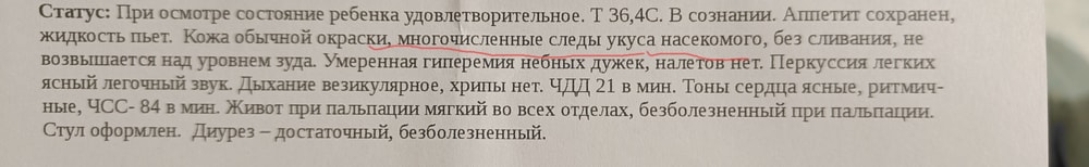 Приняла нас иностранный специалист. Сказала, что это аллергия, сделали нам укол, и назначили пить супрастин с антибиотиком.
