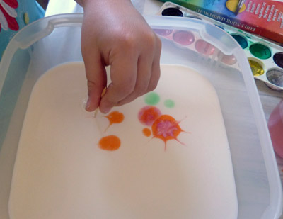 Это мы рисовали запахи клубники и апельсина (на молоке акварелью)
