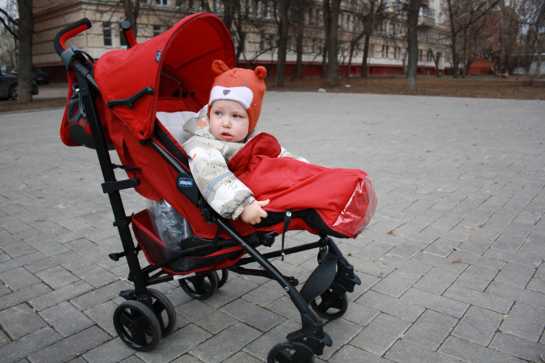 Ну, допустим не двухлетка, который уже не усидит на месте, а годовасик, вполне себе долго бы проспал на свежем воздухе. Конверт утеплён флисом.