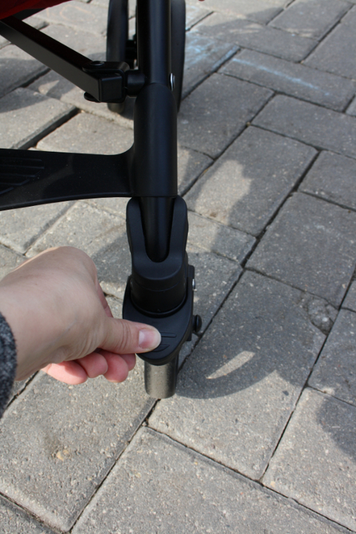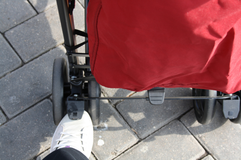 Задние колёса оснащены спаренным тормозным устройством и одним нажатием мы блокируем оба колеса.