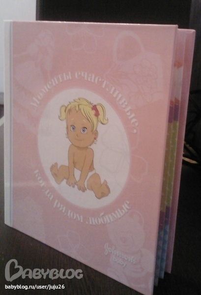 ХаляваУРА!!! Сегодня в почтовом ящике обнаружила бандероль, конверт А4, а там......фотоальбом от JOHNSONS BABY. Я уже и забыла, т. к. шел он около 2-3 месяцев. Очень приятно была удивлена)) Выглядит он как фотоальбом, только очень тонкий, но обложка твердая и страницы плотные. Жаль, что количество страничек было ограничено и был один косяк - одна фотография получилась у них раздвоенная(( Но все равно нам он понравился))))