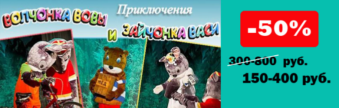 Детский спектакль Приключения волчонка Вовы и зайчонка Васи с анимационной программой, конкурсом рисунка, призами и фотосессией в апреле