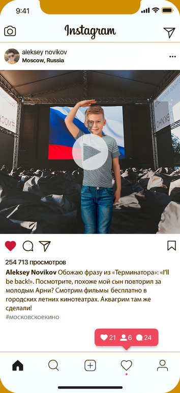 3. Опубликуй в Instagram с хэштегом #московскоекино и поставь геолокацию кинотеатра