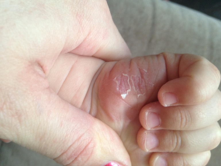 Заметила на руках у ребенка - на лодочках и пальцах рук типа диатеза ( фото есть )