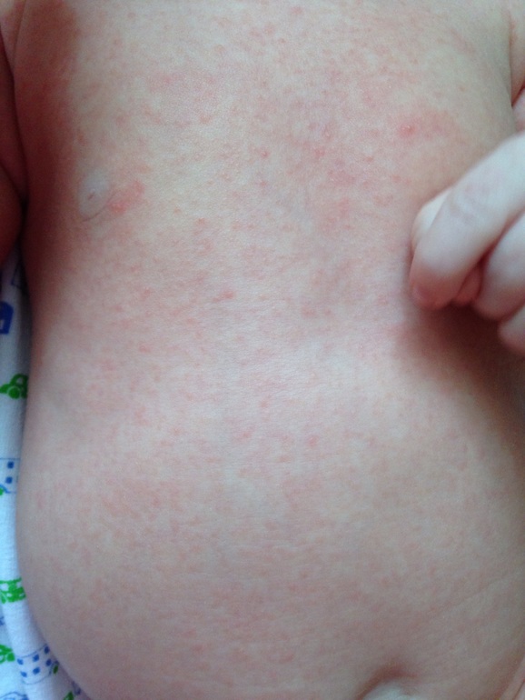 Здравствуйте. Моему сыну 1 месяц и одна неделя. На третьей неделе после рождения началась сыпь. Сначала она была в местах сгиба(подмышки, локтевой сгиб и коленный., в дальнейшем сыпь появилась на шее и на затылке потом ушки а потом и на лицо перешла и всю голову покрыло. Сейчас вообще все тело обсыпано сыпью мелкая розовая точка. Педиатр назначил лечение фенистилом (сказав что аллергия ) пропили улучшений не стало( как раз таки в этот период по телу сыпь поползла). Сейчас она назначила супрастин ! Сегодня три дня как я ему подаю, особых улучшений нет! Помогите разобраться что за кака-бяка. Действительно ли это аллергия. И как это можно вылечить.фото прилагаю17:34