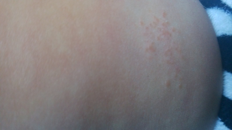 Здравствуйте, подскажите, пожалуста, ребенку сейчас 8 мес, на ГВ плюс прикорм. Два месяца назад появилась сыпь на бедре в виде водянистых пупырышек. За два месяца они только подсохли, но так и не исчезли, но и больше их не стало (мазала кремом с цинком и зеленкой). В других местах нет. Ребенка пупырышки не беспокоят.