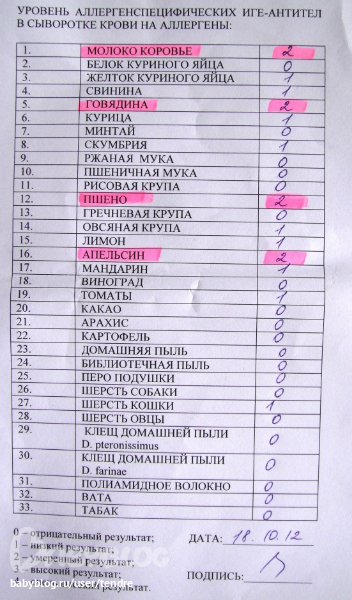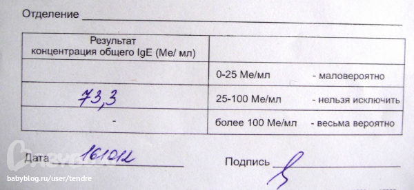 Сдали 16.10.12 кровь из вены на IgE и небольшую панель аллергенов. Нам было 11 полных месяцев. На ГВ.