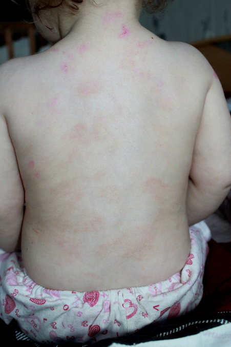 В декабре пошли на осмотр перед прививкой в год, педиатр сказала ничего страшного с пятнами можно делать - попить Зиртек опять, мазать Адвантаном, давать Аципол.