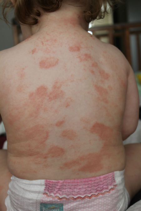 Летом начали вводить прикорм, с груши появилась сыпь, как мне показалось, а может это и потничка была.