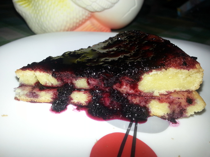 Ну и получается по сути эдакая большая оладья. Мягкий и совсем не резиновый бисквит. Нам понравилось)