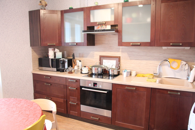 Ламинат было быстрее всего настелить. В следующий раз я бы разорилась на паркетную доску или половую доску. Просто на кухне ее надо брать с противоводной обработкой, ее даже в ванну можно стелить.