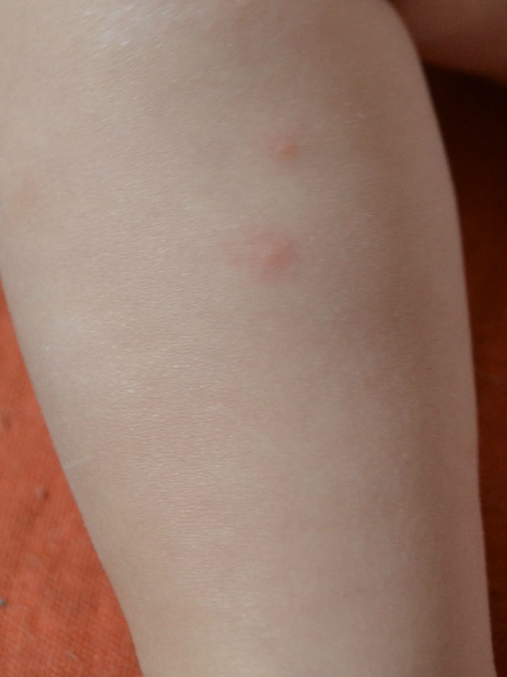 Вчера был один прыщик на лбу, сегодня заметила ещё несколько на ногах, плюс одно за ушком. Чтобы чесала их я не заметила. Вроде комаров нет. Температуры нет. Состояние вообще нормальное, ест, играет, всё в порядке.