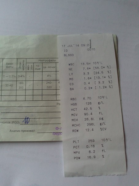 ОАК - СОЭ -10, лейкоциты как я понимаю превышены 13,5