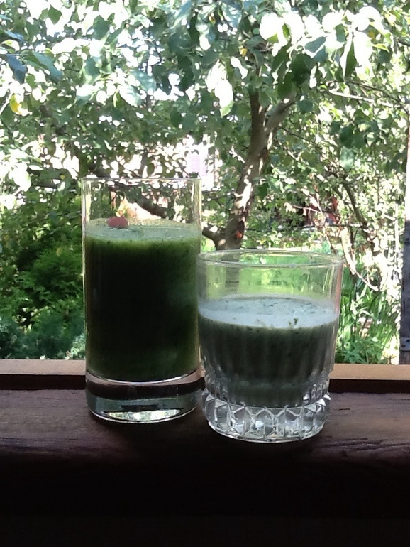 Думала, чем бы разбавить свою смесь, чтоб пить можно было. Можно было бы огуречным соком, да соковыжималки на даче нет. Разбавила яблочным компотом без сахара, подсолила, охладила.